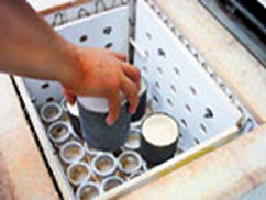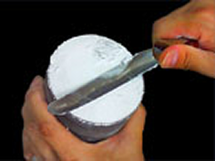 金合金・銀合金・銅合金などの鋳造で、埋没完了後の鋳型を数日放置した際には、乾燥した鋳型を10分程度水に浸けてから焼成させます。