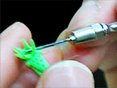 湯道の先端の形状を整え、ワックス型を完成させます。保管する場合は、ワックス型にキズや汚れが付かないよう注意します。