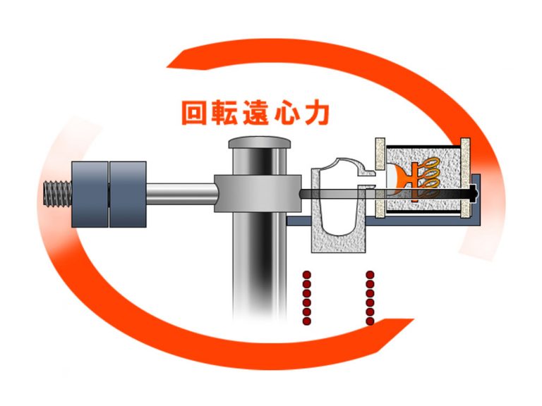 ・遠心力により鋳型内のガスの排出と溶湯の入れ替わりがスムーズに行われます。