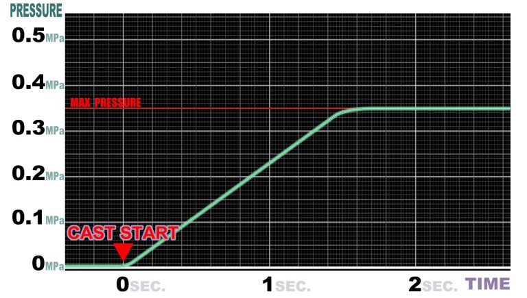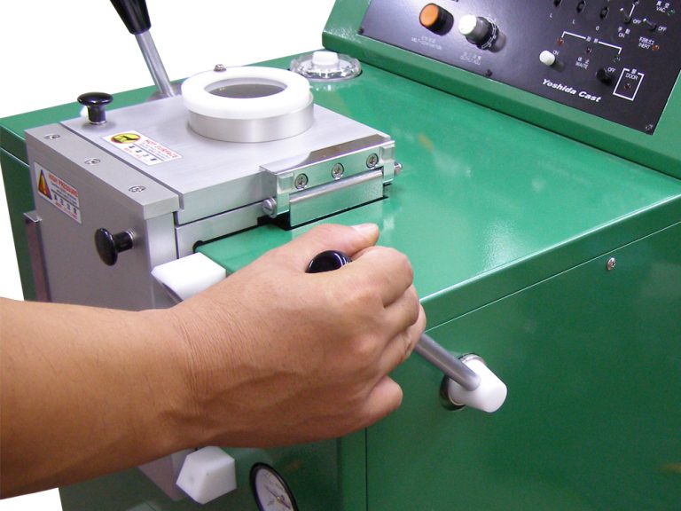 キャストタイマーに入力された時間が経過すると、鋳造開始をブザー音で知らせます。ブザー音が鳴ったら傾注レバーを引き注湯します。加圧から排圧までは自動で行います。