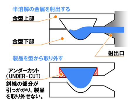 ワックス型をゴム型から取り出す際に、アンダーカット部がワックス型を引っ張り、変形する場合があります。