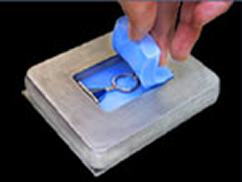 特に熱のかけられない原型の型取りや、ホットプレス機の設備が無い場合に有効な素材です。硬化剤の分量の調節で多少の硬度が若干調節できますが、RTVの種類や硬化剤の入れ過ぎ等により、裂けやすい傾向がありますので、微細な穴や大きな切れ込みを入れる必要のある形など、繊細で複雑な形状には不向きな場合があります。
