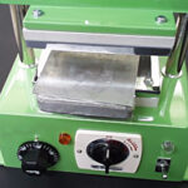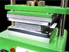 ホットプレス機にセットしてシリコーンゴムを加硫(架橋)させます。