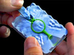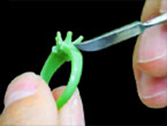 ワックスが硬化したら、ゴム型を開け、中子などをゴム型パーツから取り外します。