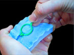 『注入角度が不適切』『必要以上の圧力』『不適切なゴム型の押え方』『ゴム型を押す力の強過ぎ』のいずれかです。この場合、射出圧力がゴム型の外へ逃げてしまうため、ゴム型内の空洞にワックスが完全に満たされていない場合がほとんどです。