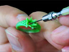 ゴム型にタルク又はベビーパウダーなどの粉を、ゴム型のエアーベント部に擦り込むように塗り、射出時の空気の抜けを良くします。