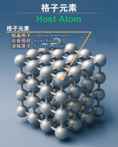 結晶学や材料科学で、結晶格子そのものを構成する元素を指す。
