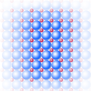 溶質原子が溶媒原子結晶格子の間隙に溶質原子(少量成分)が入り込んでできる固溶体