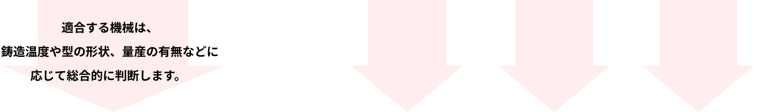 ロストワックス鋳造機は、金属の種類(融点)や方案の違いから複合的に条件を絞り込み、選定します。